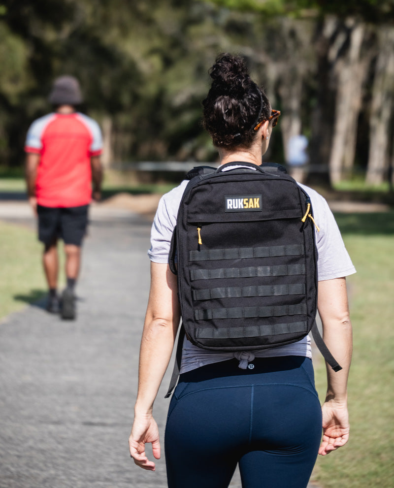 Put simply, rucking is walking a weighted backpack or vest. Combining cardio with strength training, rucking provides a low impact workout that works your heart, while engaging your legs, back, arms and core muscles.